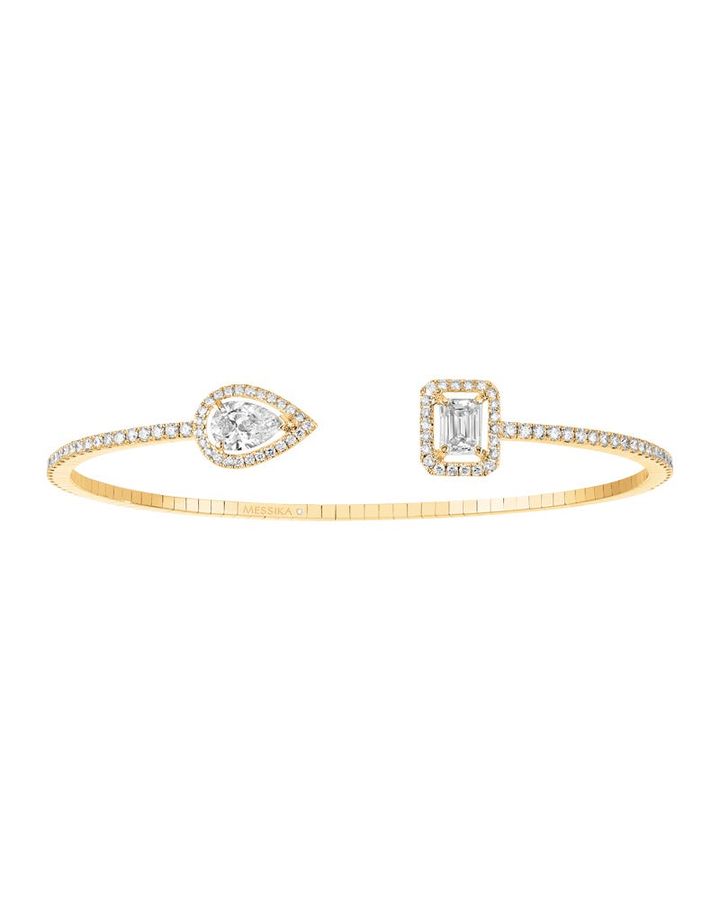 ナノレベルのスプリングを忍ばせ、フレキシブルでつけ心地のよい「スキニー」コレクションのコンセプトに、「マイ ツイン」を組み合わせたバングル。メシカが誇る卓越した宝石技術とダイヤモンドの専門知識が融合したデザインで、まるで手元にダイヤモンドをまとったような感覚に。