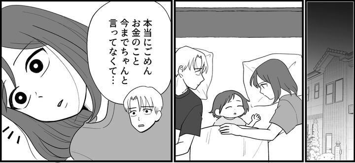 ソウタは給料のほとんどを実家にいれており、そのお金は母親の借金返済にまであてられていたという衝撃的な告白を受けた夜、私は深く考え込んでしまいました。もう少し早く教えてほしかった。知っていたらソウタの様子を見てイライラすることもなかっただろうし、義母との関係だって徹底的に拒めたのです。