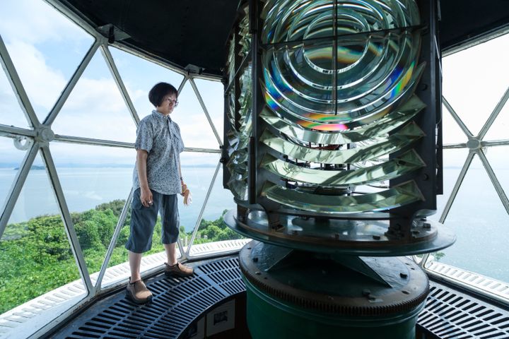 三十キロ先まで光が届くというフランス製のレンズは独特の形で、まるでシャンデリアかオブジェのように美しく、百三十年も現役で海を照らし続けている。
