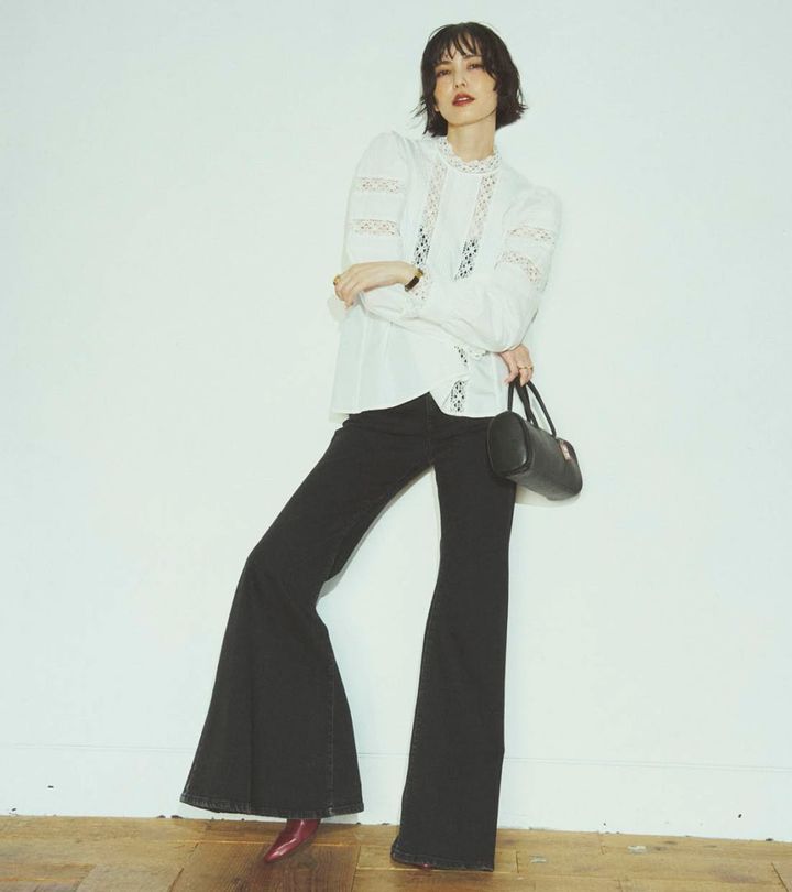 美脚効果絶大の「ブラックデニム」は甘めブラウス合わせでも洒落モード見え!【10日間着まわし】