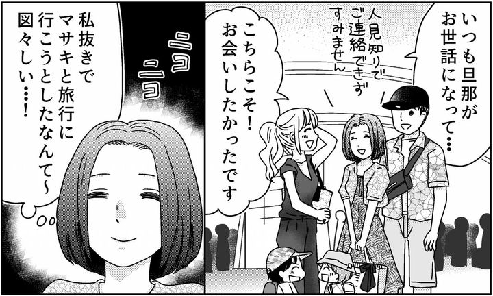 私はナオ(32)。旦那マサキ(33)が息子のジン(5)を連れて幼馴染の女性ユズさん(33)と遊んでいることがSNSで判明しました。沖縄旅行の予約までしているのです。その計画を止めたくて「離婚」と言ったのに、旦那は逆に離婚を望んでいるようでした。「今までのようにユズと遊んでいいなら離婚はしなくてもいい」と平然と言ってのける旦那に、宇宙人と対話しているような恐怖を感じました。私の本心は離婚なんてしたくありません。
