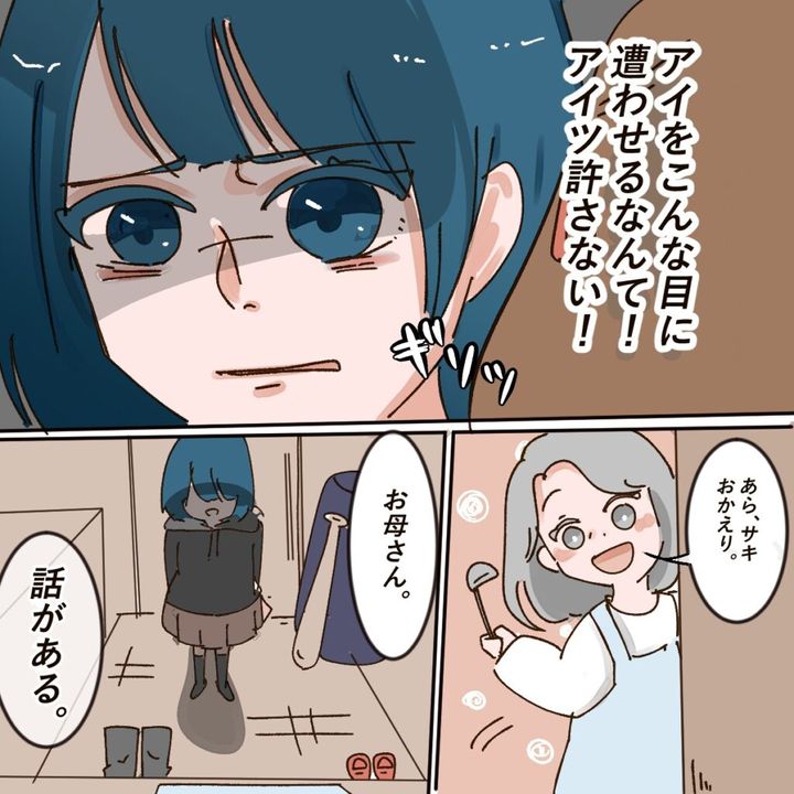 「アイをこんな目に遭わせるなんて!アイツ許さない!」と怒りがこみ上げるサキ。