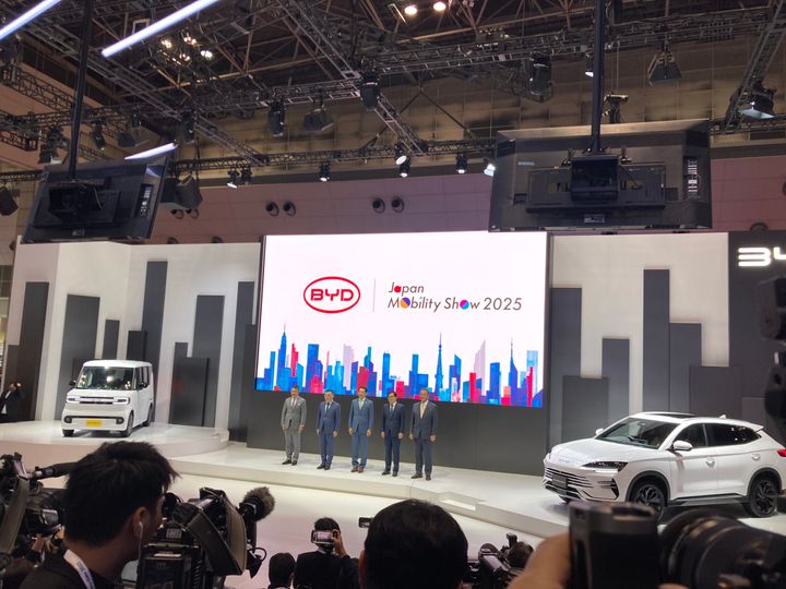 自信を持って語るのがBYDオートジャパン・商品企画部担当部長の田川博英さん。ボディ剛性が高いことが乗り心地のすばらしさにつながっているということです。レーザー溶接などの技術も剛性に寄与していると話していました。一般にEVは重いバッテリーの影響で、どっしりと安定した乗り心地に定評がありますが、それだけではないことを強調します。「そもそもEVは軽自動車にとって相性がいいと思う。(日本勢と)対抗云々というより、一緒に盛り上げていければいい」と田川さんは話しています。このほかBYDは、PHEVの「SEALION(シーライオン)6」も出展。EVだけでないエンジン技術もアピールしていました。