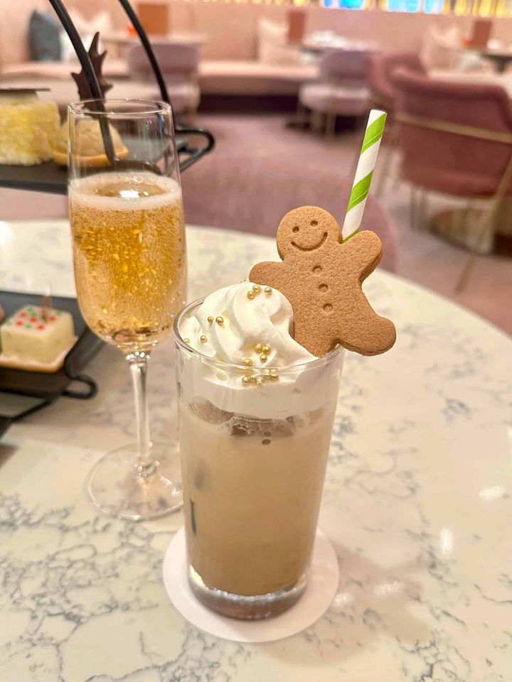 雪のようなホイップクリームの上にのせたジンジャーブレッドマンが可愛いスイートなドリンク。