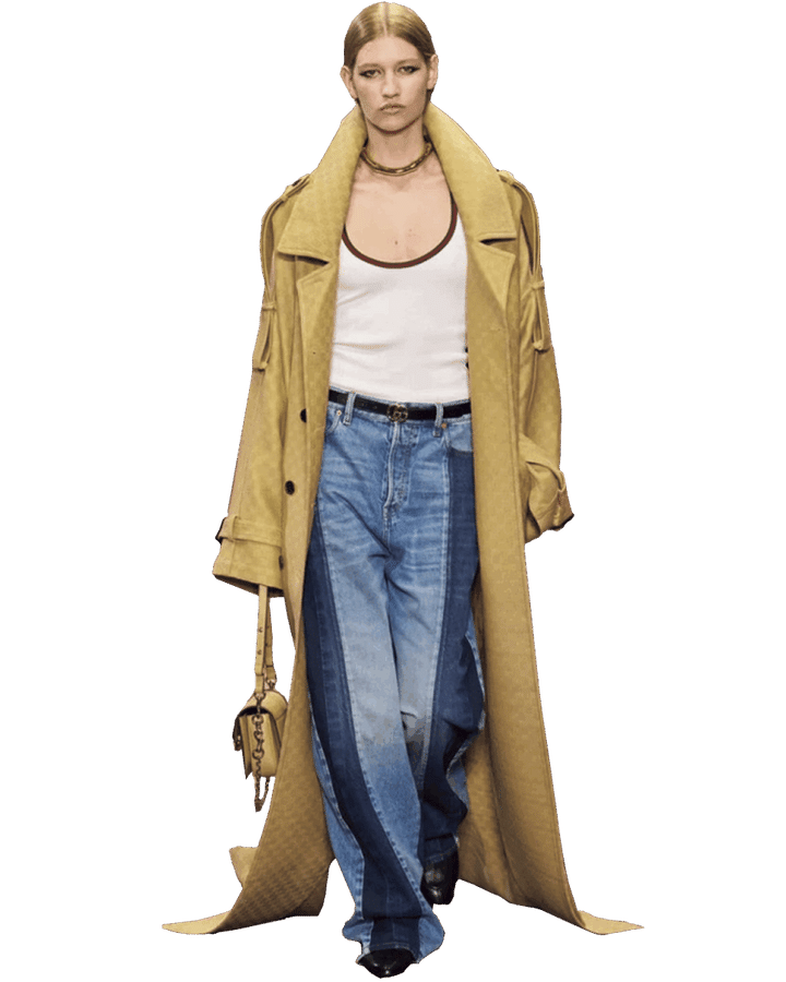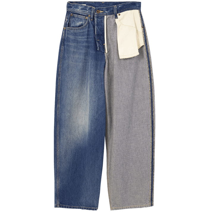 メゾンブランドのコレクションでも注目を浴びた、異なるカラーや異素材を組み合わせたデザイン性の高いデニムパンツ。存在感のある1本は他をシンプルにまとめて主役として引き立てたい。