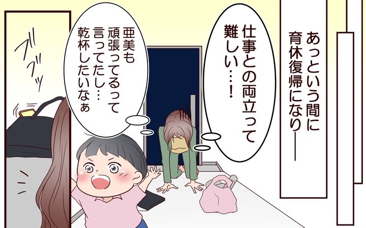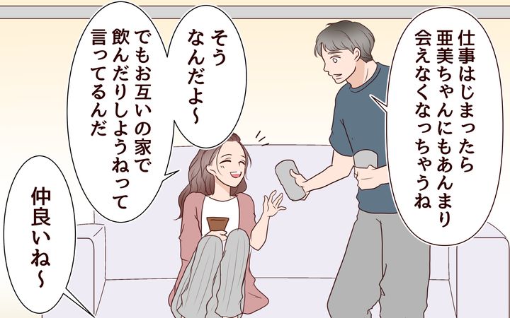 同い年で同じ月齢の息子がいる亜美とはすぐに意気投合し、楽しい育休を過ごせることができました。仕事に復帰してからはお互いの家で飲むことが増え、そこで亜美の旦那さんに出会ったんです。