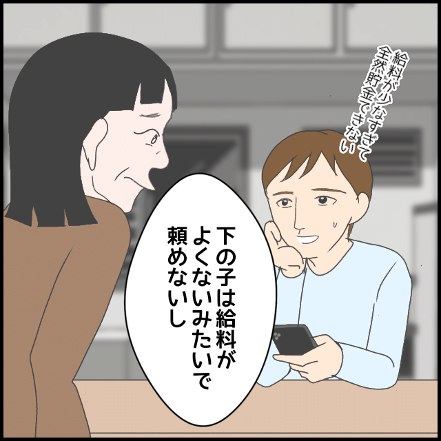 結婚後すぐに夫の海外赴任が決まると、なぜか義母も現地へ行くといい、夫はその費用まで負担。さらにうみをライバルのように扱い、息子である夫に散々お金を使わせて帰国する。しばらくして、日本で義母の誕生日を祝うことになるが、その出費は10万以上。うみはワガママ放題の義母はもちろん、何も言わない夫にもイライラを募らせていく。