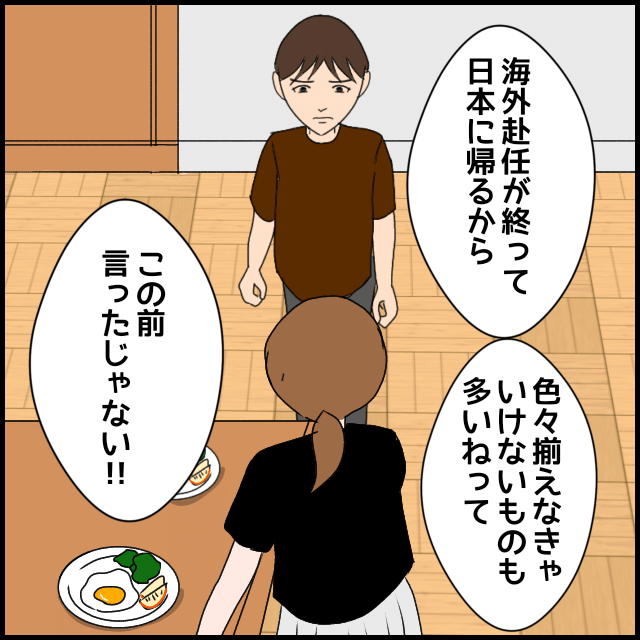 夫との出会いは合コン。結婚後すぐに海外赴任が決まり、うみも1ヶ月後に現地に向かうことになっていた。ところが、義母はうみより先に現地に行くといい、夫はその費用まで負担。その後、到着したうみをライバルのように扱い、息子である夫に散々お金を使わせて帰国する。