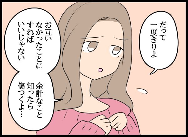 お酒の勢いでたった一度きりの出来心だからなかったことにすればいい、と話す愛華。一瞬、隆司もそうすれば由衣が傷つくことはない…そう思いました。