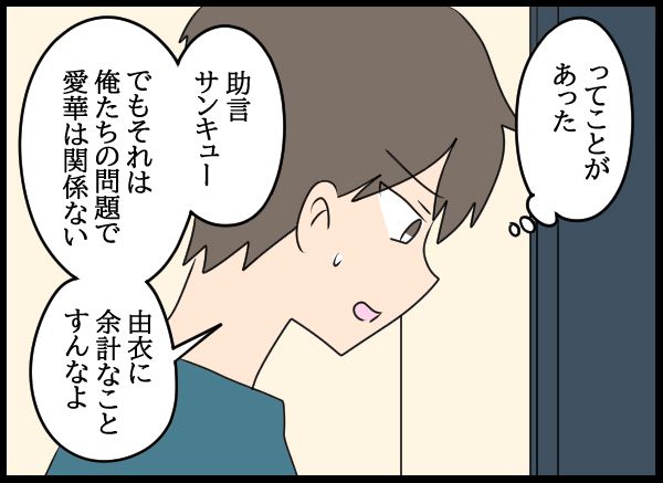 愛華に余計なことはしないで欲しいと伝えて、その場をあとにしたのでした。
