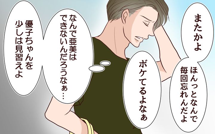 それなのに、妻はせっかくの旅行に水を差すようなヘマばかり。どうして亜美は優子ちゃんみたいに完璧にできないんだろう。