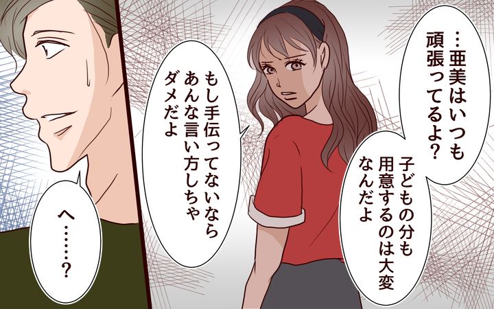 亜美は家事育児に非協力的な夫・拓馬とすれ違いが続いていた。ママ友の優子と出会ってからは、3人で一緒に子どもたちと出かけることが多くなり、夫婦のギクシャクが解消したかと思われたが…。
