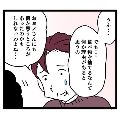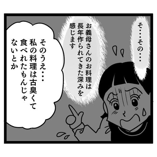 翌朝、義母はもう気にしていないと言うのですが…何か企みがある様子。ご近所の奥様方の立ち話の輪の中に入ると、「嫁が私の料理をシンクに捨てた」と嘘を吹き込みます。