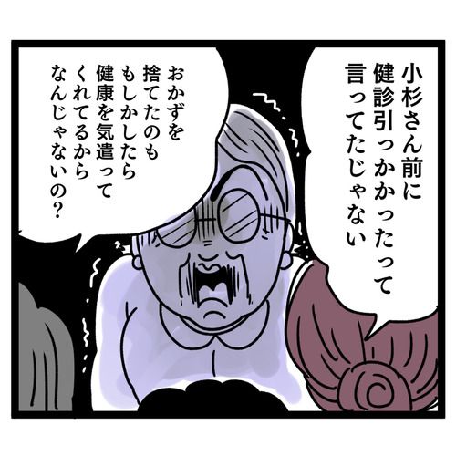 ふたりの健康を心配して食事の塩分が多すぎることを指摘した栄美ですが、逆上した義母はその日のおかずをシンクにぶちまけてキレます。