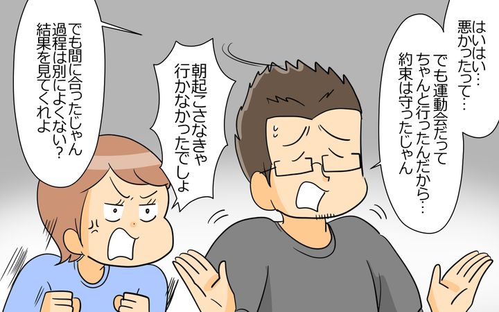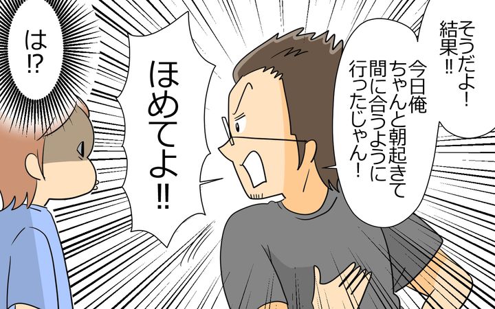 そう説教していると、夫はなぜか「結果を見て」と話をすり替え、早起きした自分をほめてと言い出しました。