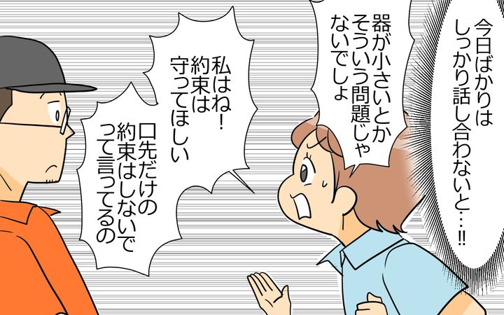 夫から逆に説教されて、腹が立ちながらも私なりに歩み寄る努力をしようと思いました。だから、夫にも約束を守る努力をしてほしい。
