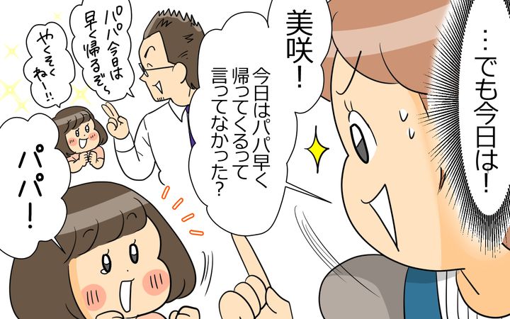 今日、早く帰ってくるって言ってたよね!?