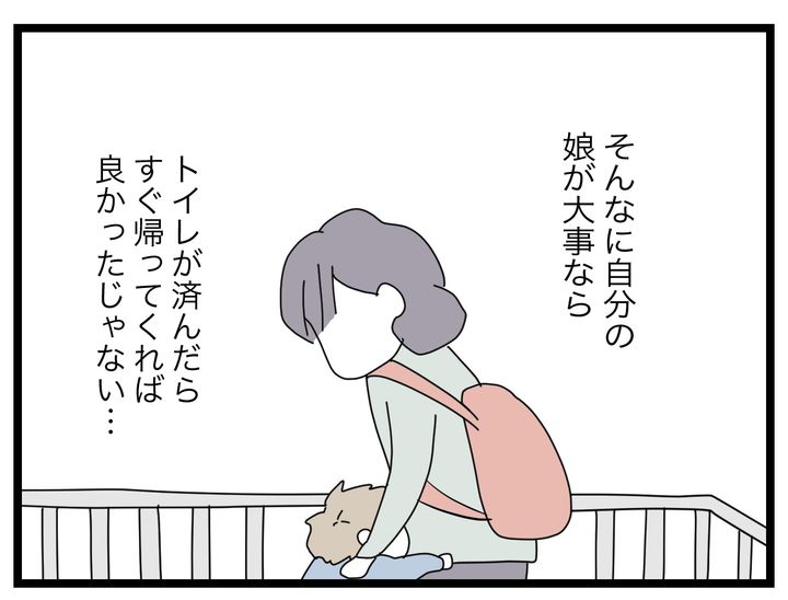 「舐めた態度」と言うけれど、そちらの態度はどうなの? そんなに自分の娘が大事ならトイレが終わったらすぐ戻ってくればいいのに…。しかも、子どものソラにも詰め寄って…。