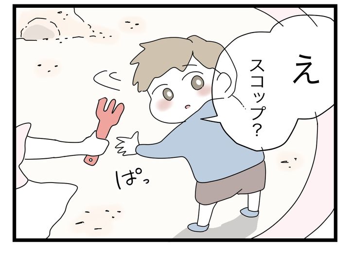 息子のソラがスコップに気を取られ手を離した瞬間、それは起きてしまうのです…!