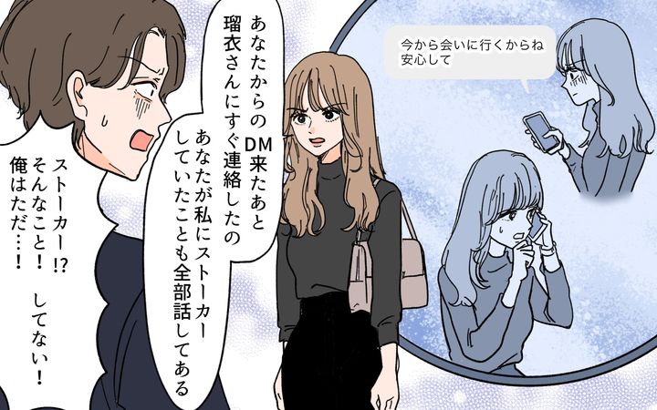 インフルエンサーの「シズク」に傾倒する夫・蓮の言動に、瑠衣はずっと悩まされていた。ある日、瑠衣は夫の部屋でシズクと蓮のツーショット写真を見つけ、ふたりの関係を疑う。証拠を掴むために夫を尾行した先でシズクと対峙するが、そこで瑠衣は衝撃の事実を知ることに…。シズクは夫の元カノだった。そして、今現在、蓮からストーカーされているという。