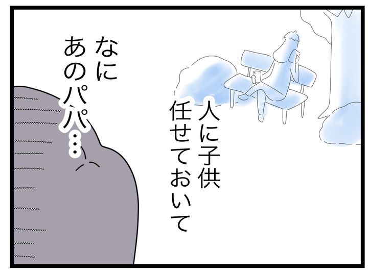 2. ベンチで休んでいるパパさんに怒り…! もしかして託児所扱いされている!?【託児所扱い Vol.5】