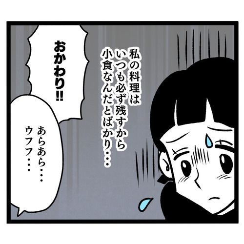 夫は料理上手な義母に料理を教わってほしいと言いますが、一緒に料理してみると義母は味付けに大量の醤油を入れていたのでした。「間違っても細粒だしなんて使わないでね」「あんなものを使うと舌がしびれてしまうわ」と上から目線の義母ですが、できた料理を食べた栄美の舌はしょっぱさにしびれます。いっぽう夫は「これだよ母さんの味」とがっつくのでした。