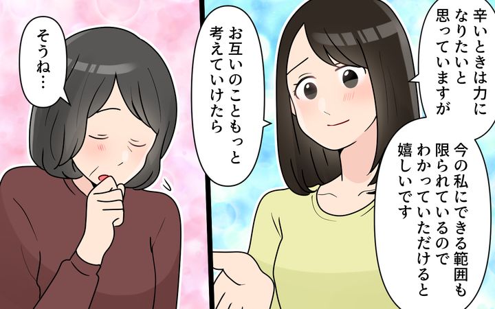 今までは私もお義母さんに気を遣い過ぎていたところがあったので、今回の一件で、ちゃんと言葉にして伝える大切さを学びました。