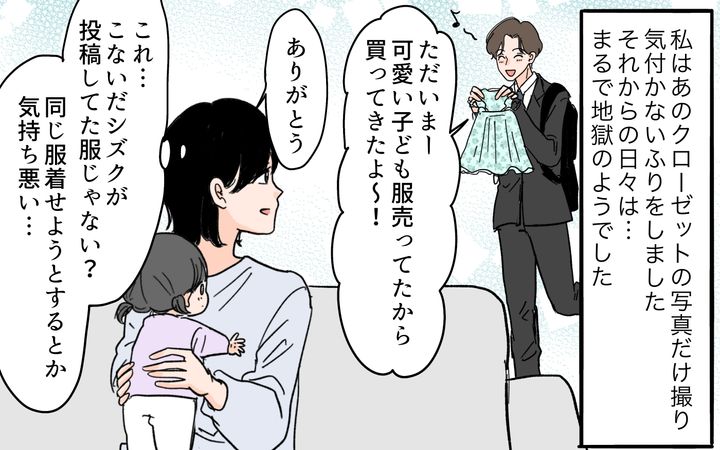 私にクローゼットの写真を見られたとも知らず、夫は相変わらずシズクに夢中。最近では平然と「シズクを参考にした方がいい」とまで言うように。