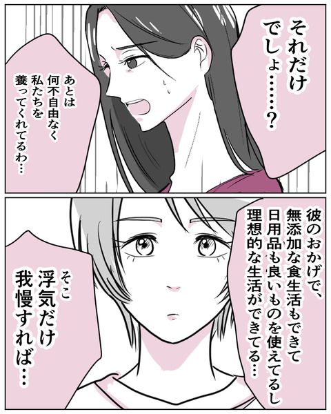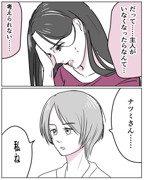 たとえ夫が裏切っていても、自分が我慢すればいいというナツミ。もしも反論して、夫が自分のもとから離れてしまったら…と考えると、何も言えない様子です。
