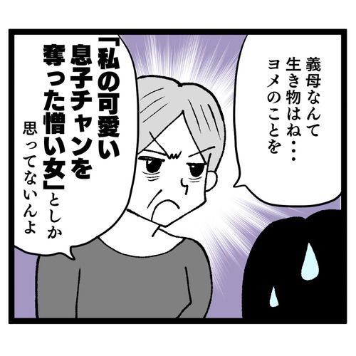 マッチングサービスで塩太と出会い、1年でプロポーズされた栄美。塩太は頼りがいもあり幸せの絶頂でした。しかし突然彼から義母と同居してほしいとの申し出が。離婚して独り身で暮らす義母は塩太と離れて暮らすのを不安がっていると言います。正直言って嫌な栄美ですが、断ることができず、押し切られる形で同居に承諾したのでした。これが地獄の始まりだったのです…。