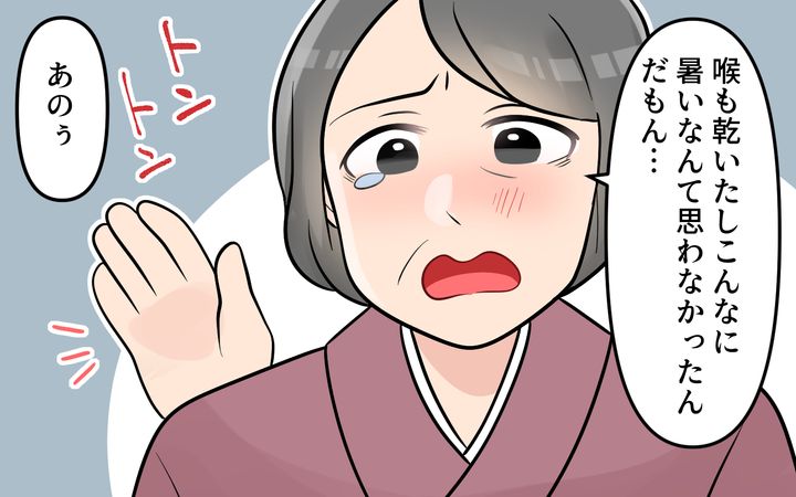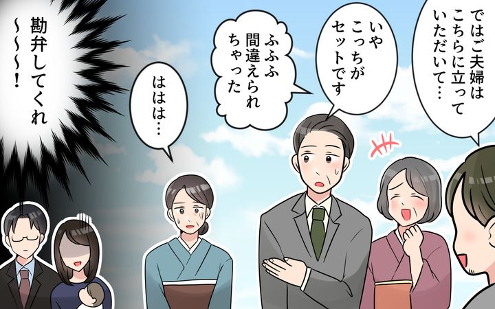 お宮参りの主役は息子です。家族が息子に注目するのは当然なのに、それが悔しいのか、「足が痛い」「喉が渇いた」と騒ぐお義母さん。