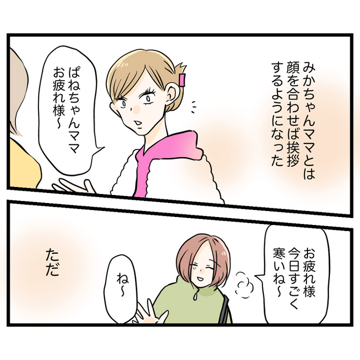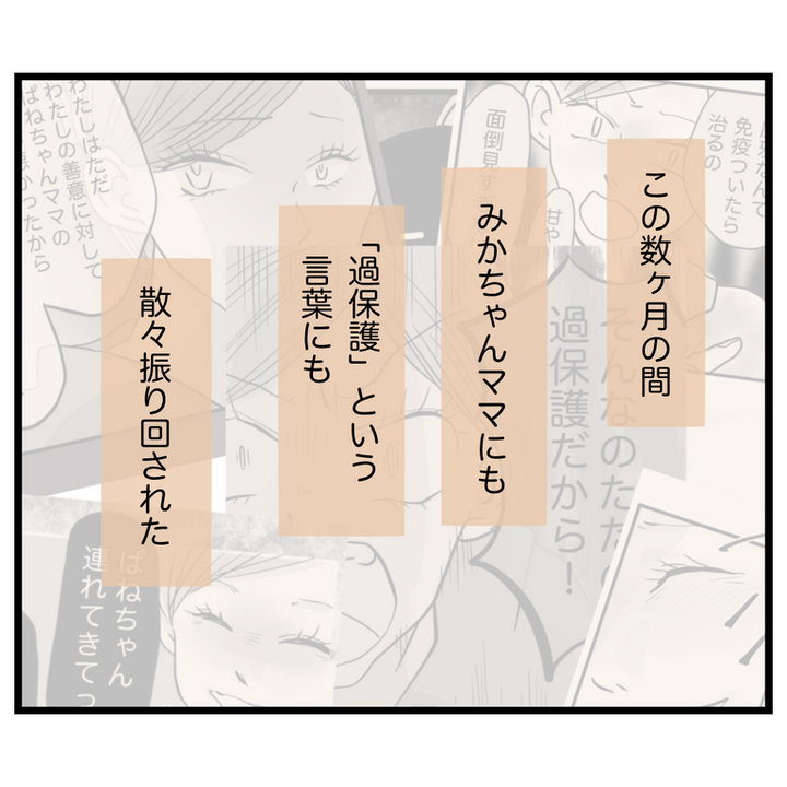仲が良くなかった保育園のママ友・みかちゃんママ。ある日言い合いになり、みかちゃんママが主人公を「過保護」と悪く言うのは、自分が子どもに対して一生懸命になれない罪悪感の裏返しだったことがわかります。