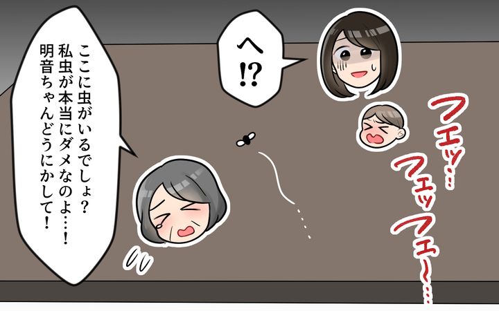 「私、虫が苦手なの」と、涙ぐんでいるお義母さん。