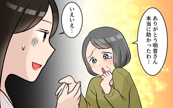 明音には、ある悩みがあった。夫を亡くしてひとり暮らしをしている義母・裕子が毎日のように家にやって来ては、明音の都合などお構いなしに長話をしていくのだ。モヤモヤしつつも、最初は話し相手になっていた明音。ある日、用事があることを告げると、義母は悲しい顔で帰宅。その後、長文の謝罪メッセージを送ってくるなど、義母の行動は少々面倒臭いものだった。