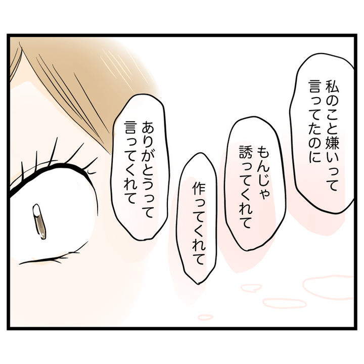お迎えが遅れたみかちゃんママの代わりにみかちゃんと保育園で待ってあげた後、彼女の実家のもんじゃ屋さんに誘われます。そして、みかちゃんと待っていたことともんじゃをおいしいと褒めたことについてお礼を言われたのでした。