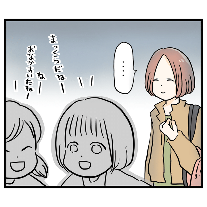 保育園に遅れてお迎えに来たみかちゃんママに会った主人公は、みかちゃんが自分の話をよくするのは、自分の名前を出すとママが聞いてくれることをわかっているからだと話します。するとみかちゃんママはみかちゃんに遅れて来たことを謝るのでした。
