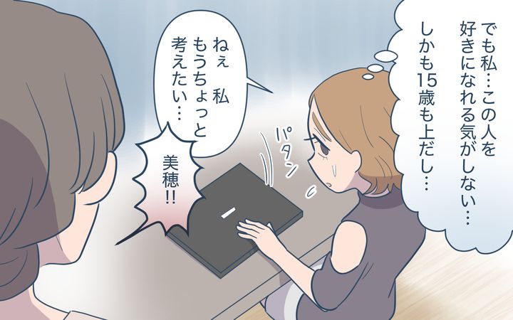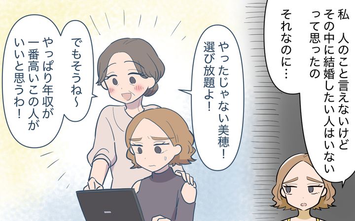 遥は自分自身が何を望んでいて、どんなことに幸せを感じるのかを見つけることが大事で、その先に誰かと一緒に生きていきたいという考えがあるのではないかと伝える。しかし義母は「せっかく美人に産んであげたのに行き遅れるなんて恥をかかせて」と美穂を責める。それからしばらくして、美穂から結婚相談所に入会させられたという連絡が遥の夫に届いて…。