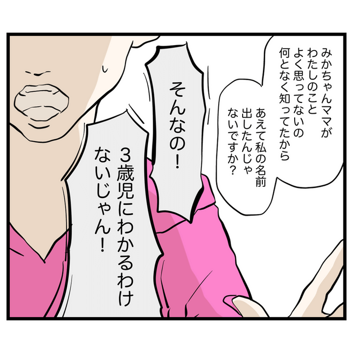ママが聞いてくれるから、あえてママが嫌いな人物の名前を出す…まだ3歳のみかちゃんにそんな難しいことははできないだろうと言うみかちゃんママ。
