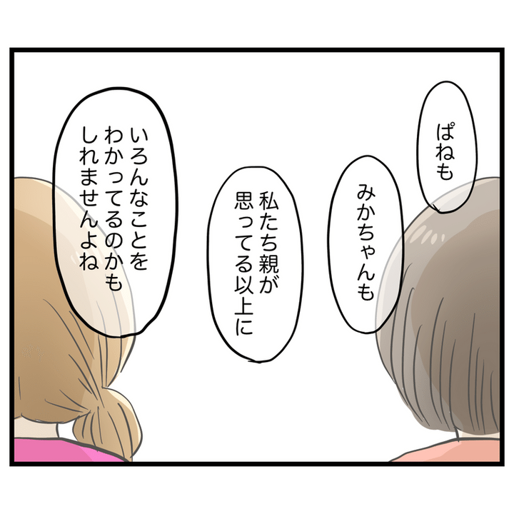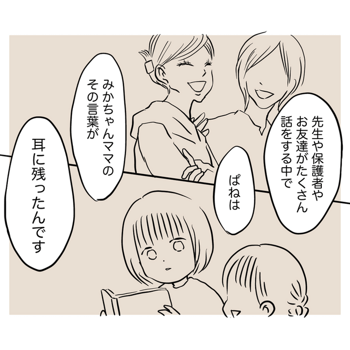 また、みかちゃんは主人公の話をよくするそうで、主人公に対しても劣等感を持っていたのでした。しかし主人公は、みかちゃんはママとお話をしたいがために、あえて自分の名前を出したのではないかと言います。