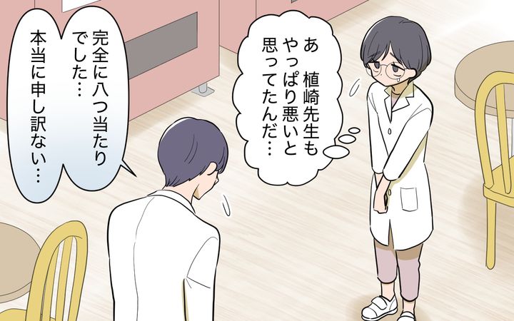 植崎先生は、研修医時代から知っている先生で、男女問わず優しく、そつがなく誰からも好かれる先生です。だからお義姉さんが怒りだす原因を作ったのは植崎先生ではないんじゃないかと考えていました。