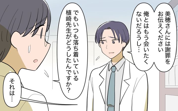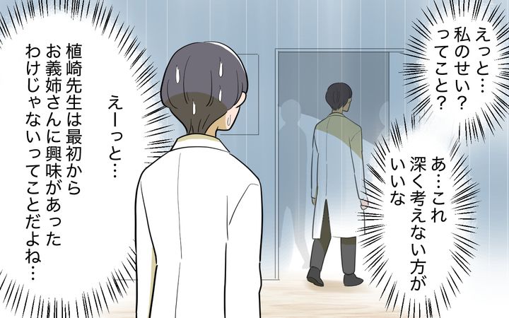 でも植崎先生から言われたのはあまりに驚きの内容で…。もしかして植崎先生がお義姉さんとデートしたのも、話し相手になったのも理由があったのかもしれません…。ただ一緒に仕事する同僚として私はこれ以上踏み込まない方がいいと判断しました。