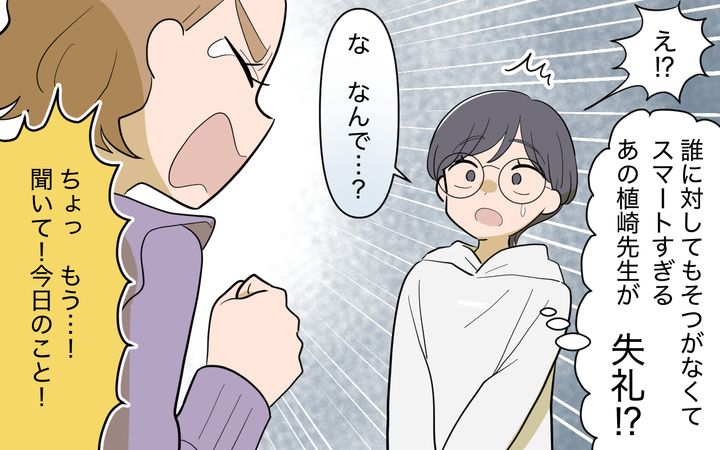 職場での同僚としての植崎先生しか知らない私にとってプライベートはわかりません。ただ職場では気が利き、人の気分を察するのがとても上手な人です。そんな植崎先生がお義姉さんに対してそんなことを言うのは驚きでした。