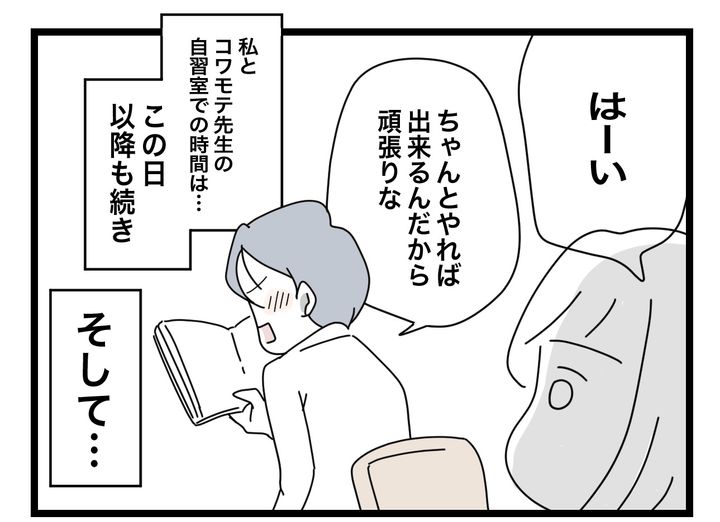 自習室でコワモテ先生に勉強を教えてもらうと教え方がうまいようで、ツム子は次々に理解し、勉強が楽しくなる。