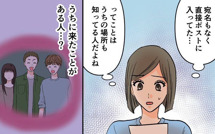 そのことがあってからしばらくして、家に宛名のない手紙が届く。開けてみると、「旦那さんと今すぐ別れてください」と書かれた紙が入っていた。