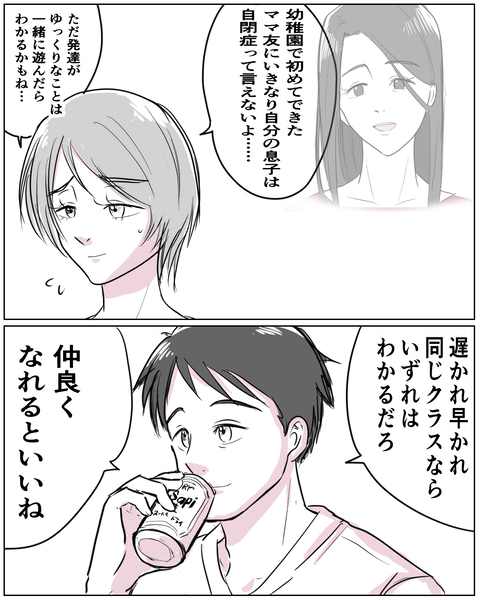 子どもを育てていく中で、必ずぶち当たるといってもいいのがママ友問題。とくに息子が自閉症で、自分自身も人見知りのハルにとっては、ここが大きな壁になっていたようです。