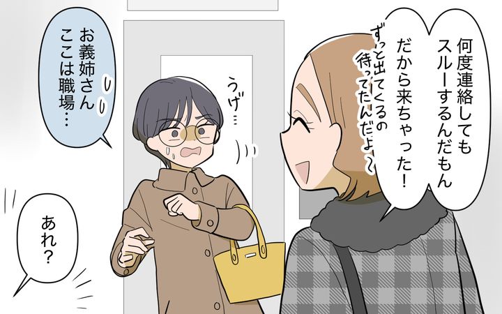 見た目だけを武器に生きてきたお義姉さんにとって、一生のパートナーをシビアに選ぼうと考える婚活の場でうまく相性の良い人を見つけるのは至難の業のような気がします。そう思ってお義姉さんからの連絡を夫の蒼太に任せスルーし続けてきたのですが、まさか病院の外で待っているとは。しかも間が悪いことに同僚の植崎先生が来てしまい…。