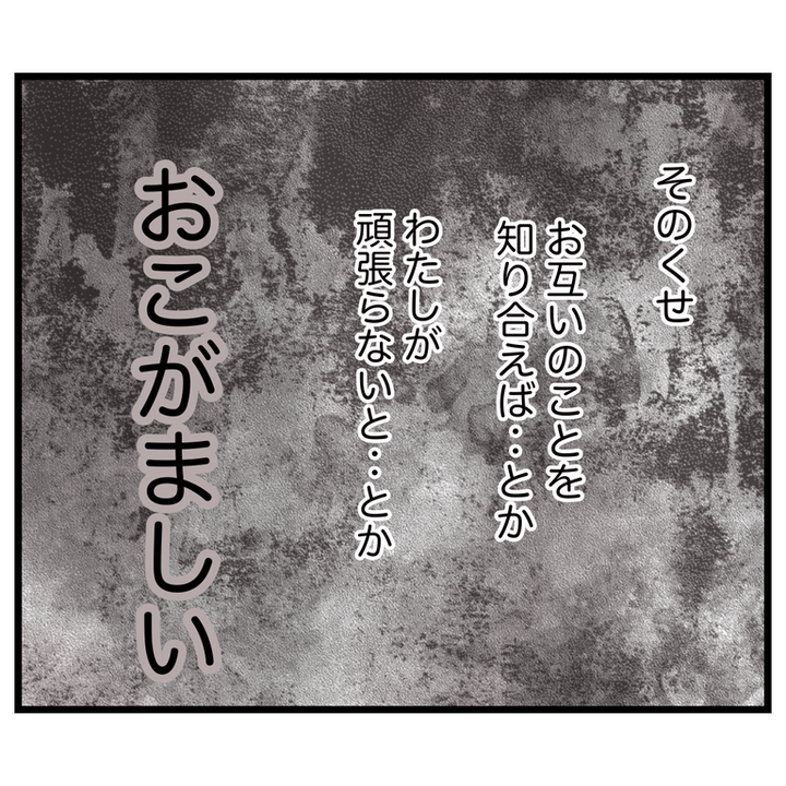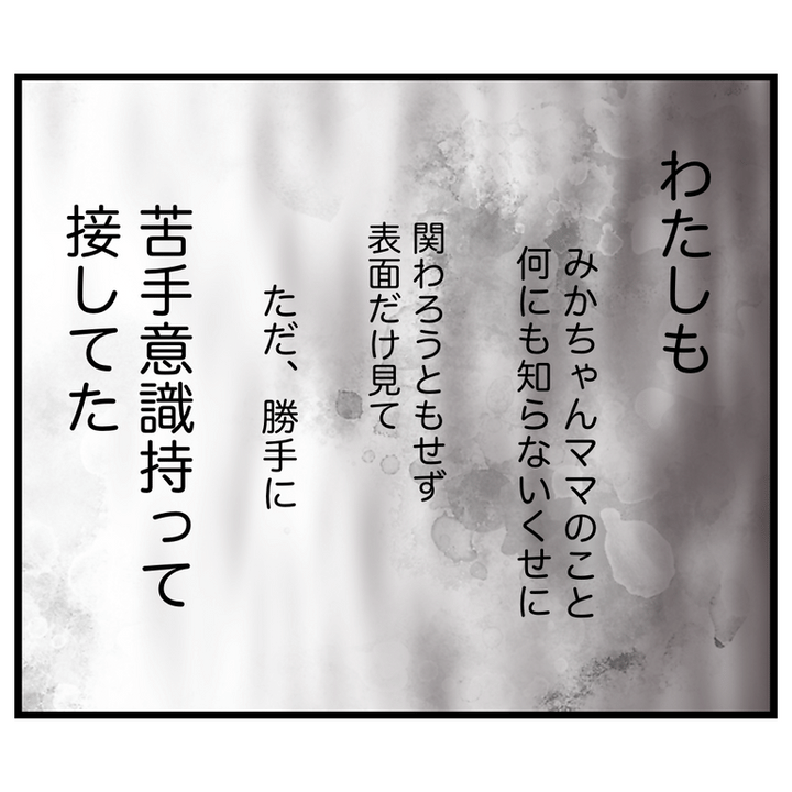 でも、考えてみたらそれは私も同じ。みかちゃんママのこと何もしらないくせに、苦手意識を抱いていた。けど、だからと言って、みかちゃんママに謝る理由にはならないはずです。
