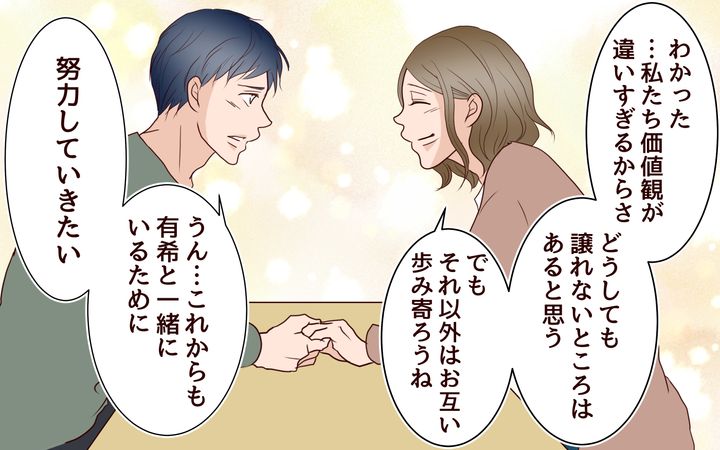 お金の価値観が違いすぎる私たちですが…、これからも一緒にいるためにお互い歩み寄る努力をすることにしました。とはいえ、どうしても譲れない部分はあります。夫がトラウマを克服するのが難しいなら、それは仕方ありません。日々できるだけ前向きに、私たちなりの解決方法を探しています。