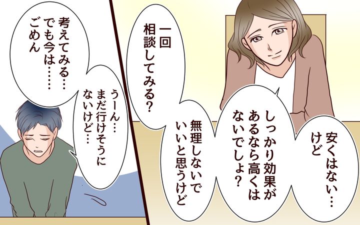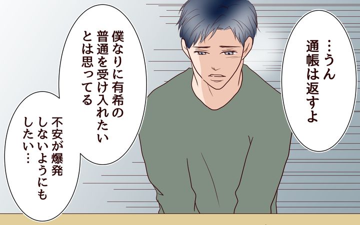 しかし俊一との楽しかった日々を思い出した有希は本当は別れたくないという自分の気持ちに気付く。お金がなくなる不安を抱えた夫に、夫婦で助け合っていけば大丈夫だと伝える有希。そして有希が自由になるお金で、俊一にとってムダに思える使い方をすることを受け入れてほしい、と訴える。