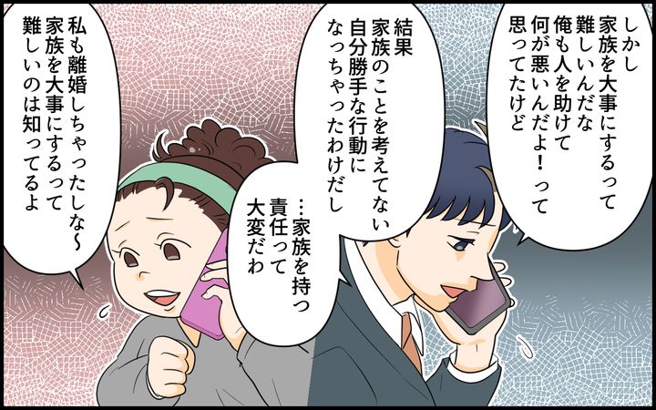 俺は急に距離を置いて美里を嫌な気持ちにさせないように、真衣に怒られたこと、真人に忠告されたこと、すべてを打ち明けました。美里は「私も学生時代のノリだった」と謝っていました。その上で、自分も離婚した身であるから家族を大事にする難しさはわかっていると言ってくれました。